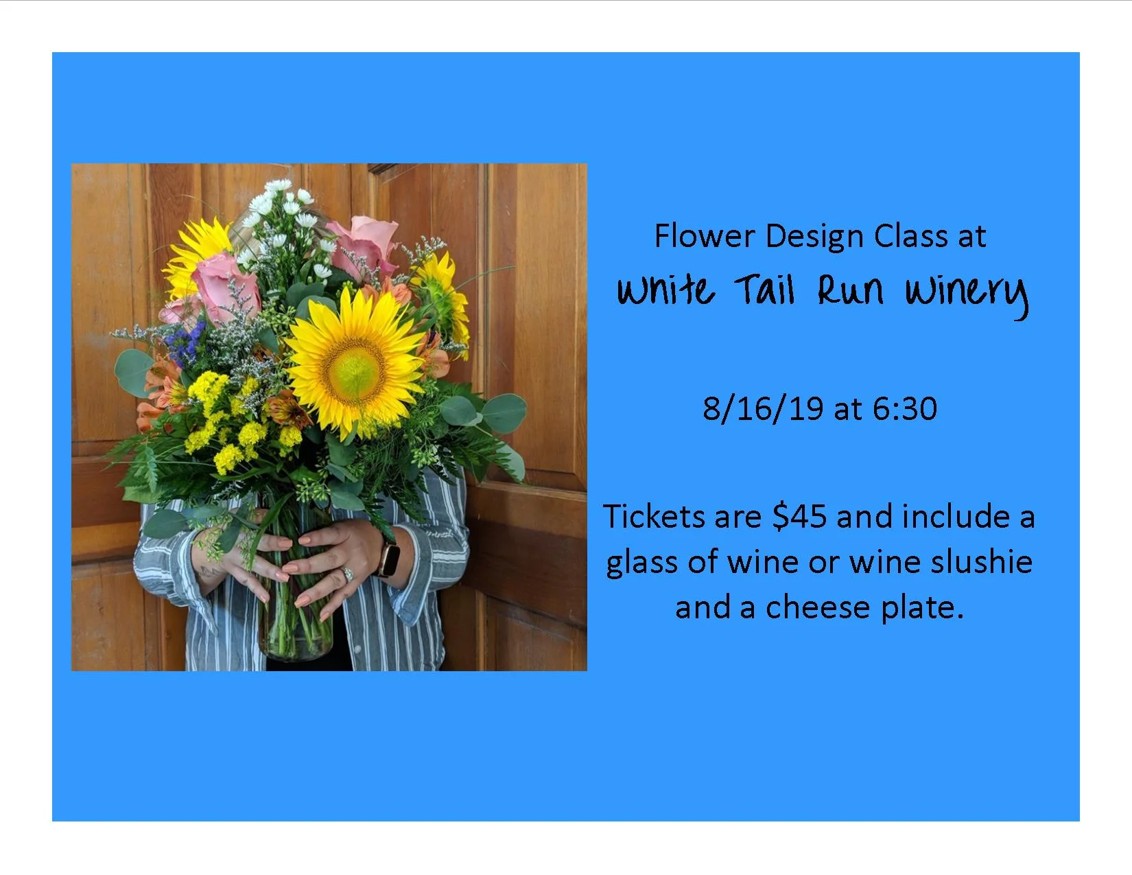 Enjoy a ladies night out at White Tail Run Winery. We are partnering with In Full Bloom to bring you this fun Native Floral Design Class.