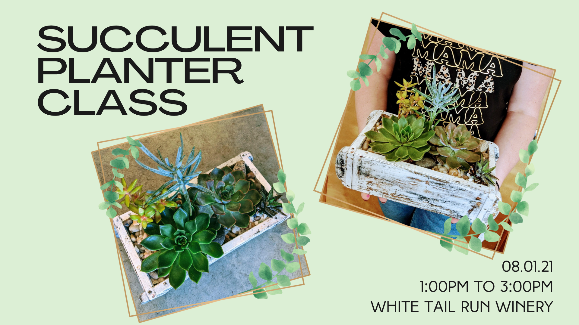 We are partnering with In Full Bloom to bring you this fun Shabby Chic Succulent Garden. This will be a mix of tropical succulents in a shabby chic box. The planter size is 12" W x 6" D. Tickets ($55) include all supplies and a glass of wine, wine slushie, sangria, or beer.