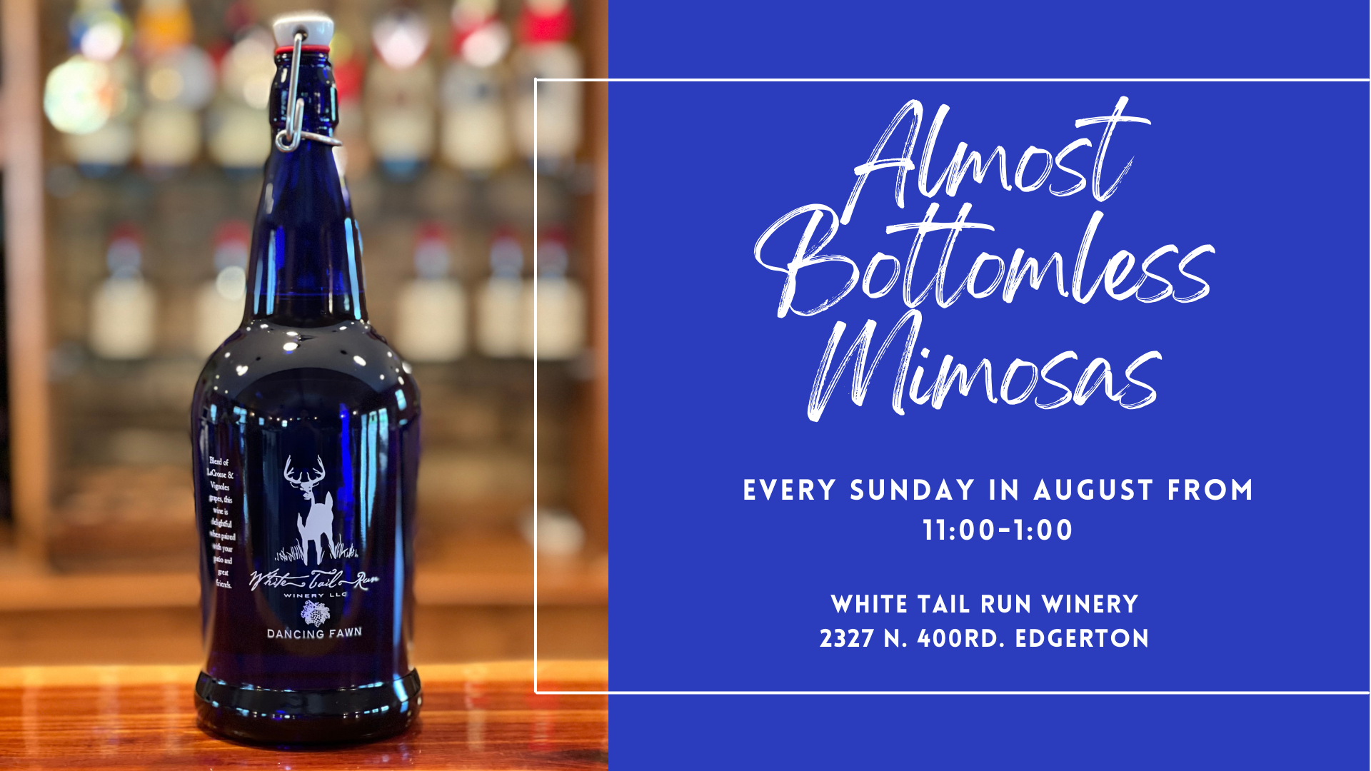 Almost Bottomless Mimosas will be available every Sunday in August from 11:00 to 1:00. For $18 you will get 5 glasses of mimosas made with your choice of juices added to our sparkling wine called Dancing Fawn.
