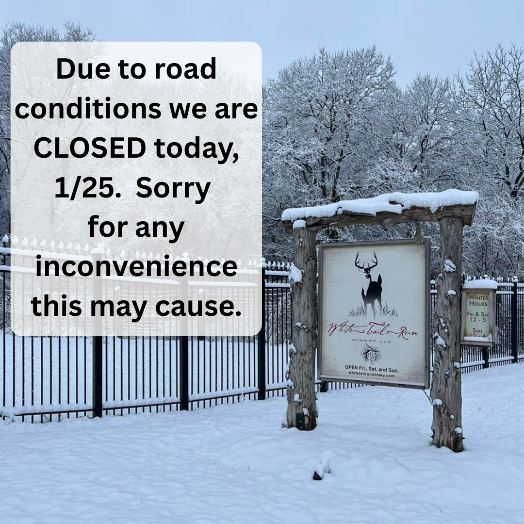 Due to not-so-great road conditions at the winery, we are CLOSED today (Sunday 1/25).