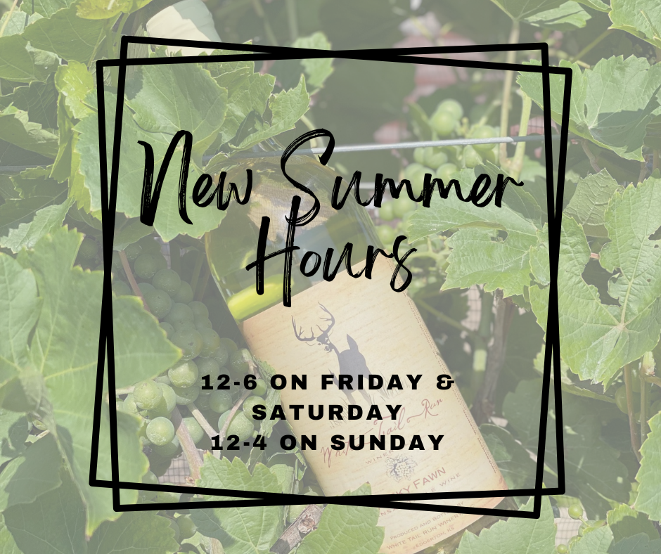 🍷🌸 Summer hours are back at the Tasting Room. Starting 3/13/26 we will now be open an hour later.